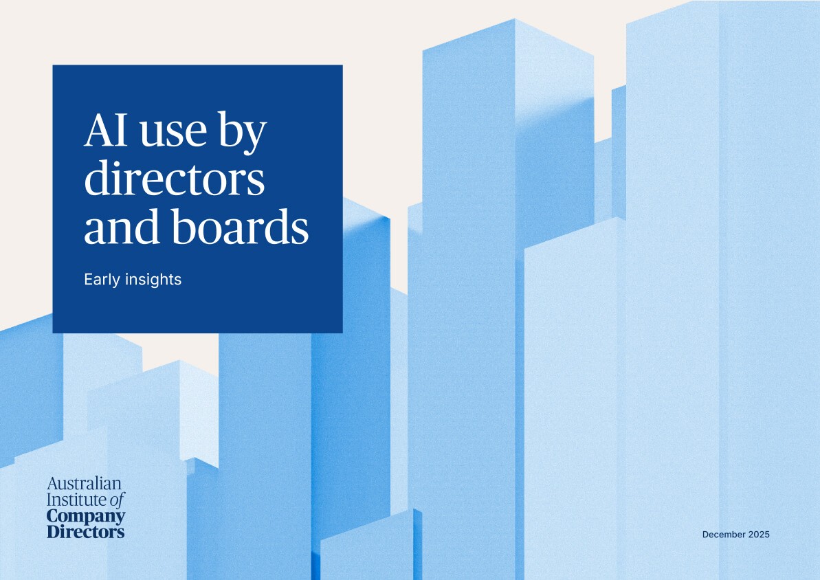 AI use by directors and boards: Early insights examines how AI is being used within boardrooms and by directors. Drawing on interviews with chairs, non-executive directors and experts from a range of organisations, this resource explores: